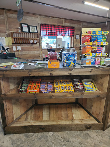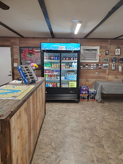 Our new store front is fully stocked with drinks, groceries, snacks, and some great tackle like our friends mentioned below alonng with Zoom, Booyah, Gary Yamamoto, KVD, Grande Berkley, Bass Assassin, Eagle Claw, Spro, Strike King, Bobby Garland, Crappie and catfish supplies.
